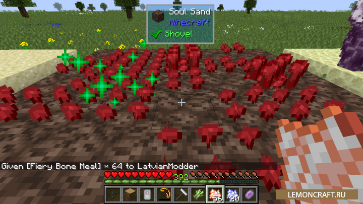 Мод на быстрый рост растений Bone Appetit добавит в игру возможность выращивать растения на песках и камнях края, а так же на песке душ в ускоренном темпе. Для того, что бы ускорить рост растений вам понадобиться костная мука, соответствующая выращиваемому растению.